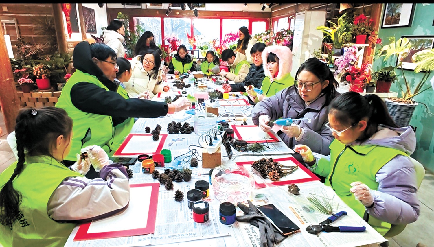 西城区玉桃园小学五年级的张梦彤同学,大年初一一早就和妈妈来到双秀公园报到。母女俩协作采集松果等自然材料,并制作了松果花束和松针福字。她们是双秀的老朋友了,几乎每周都报名参与义务植树尽责活动,听科普讲解、为绿地扫除、做自然手工……通过持续的自然观察和劳动体验,妈妈惊讶地发现,孩子写作文不用操心了,作文内容愈来愈丰富,语言也越来越生动。“我们一直以为义务植树就只是种树,在双秀公园参加了多次活动,寓教于乐之中,对植树尽责有了全面的了解,对保护生态环境、建设生态文明也有了更深的认识。”妈妈和孩子都感到收获满满。