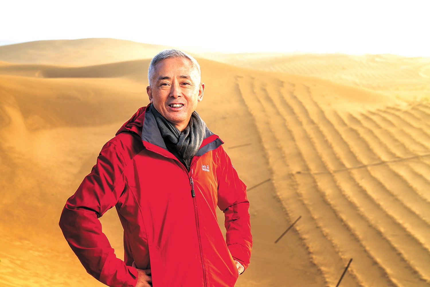卢琦在乌兰布和沙漠(联合国环境规划署Justin Jin摄)