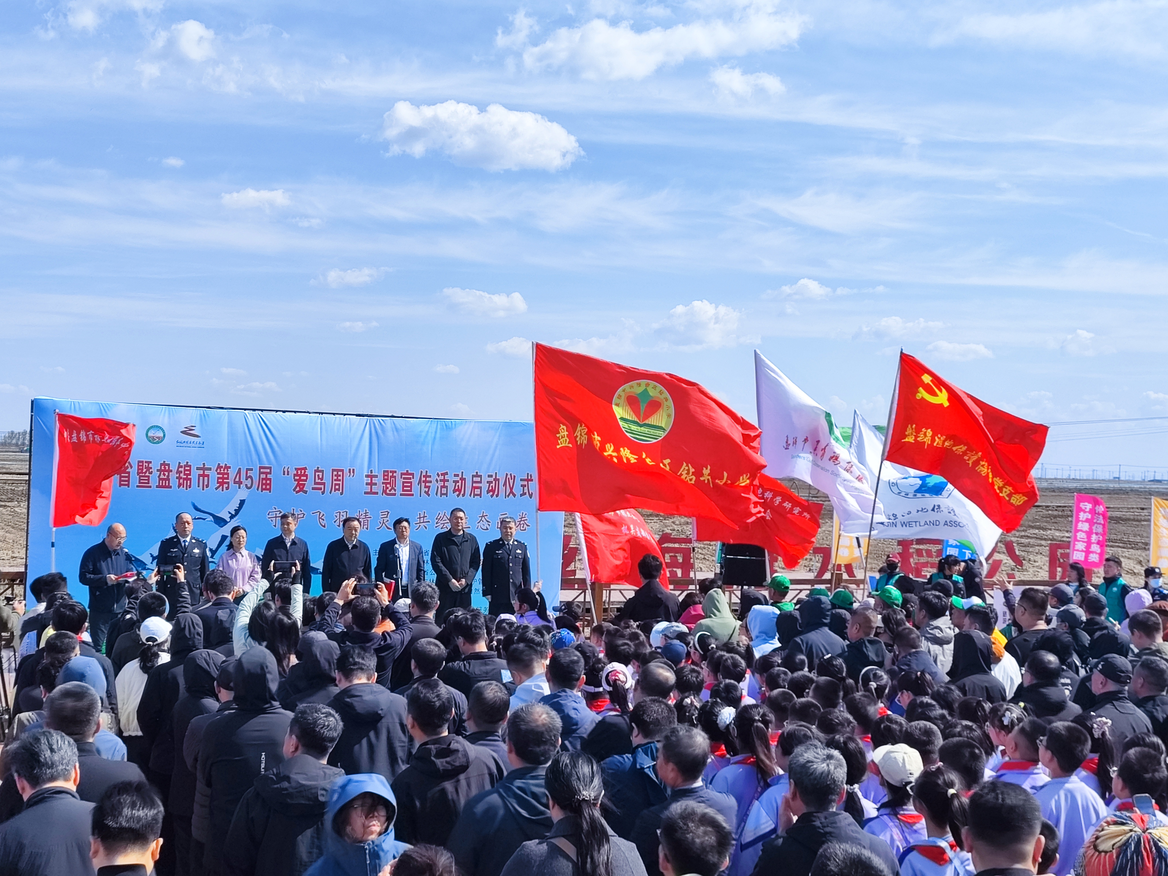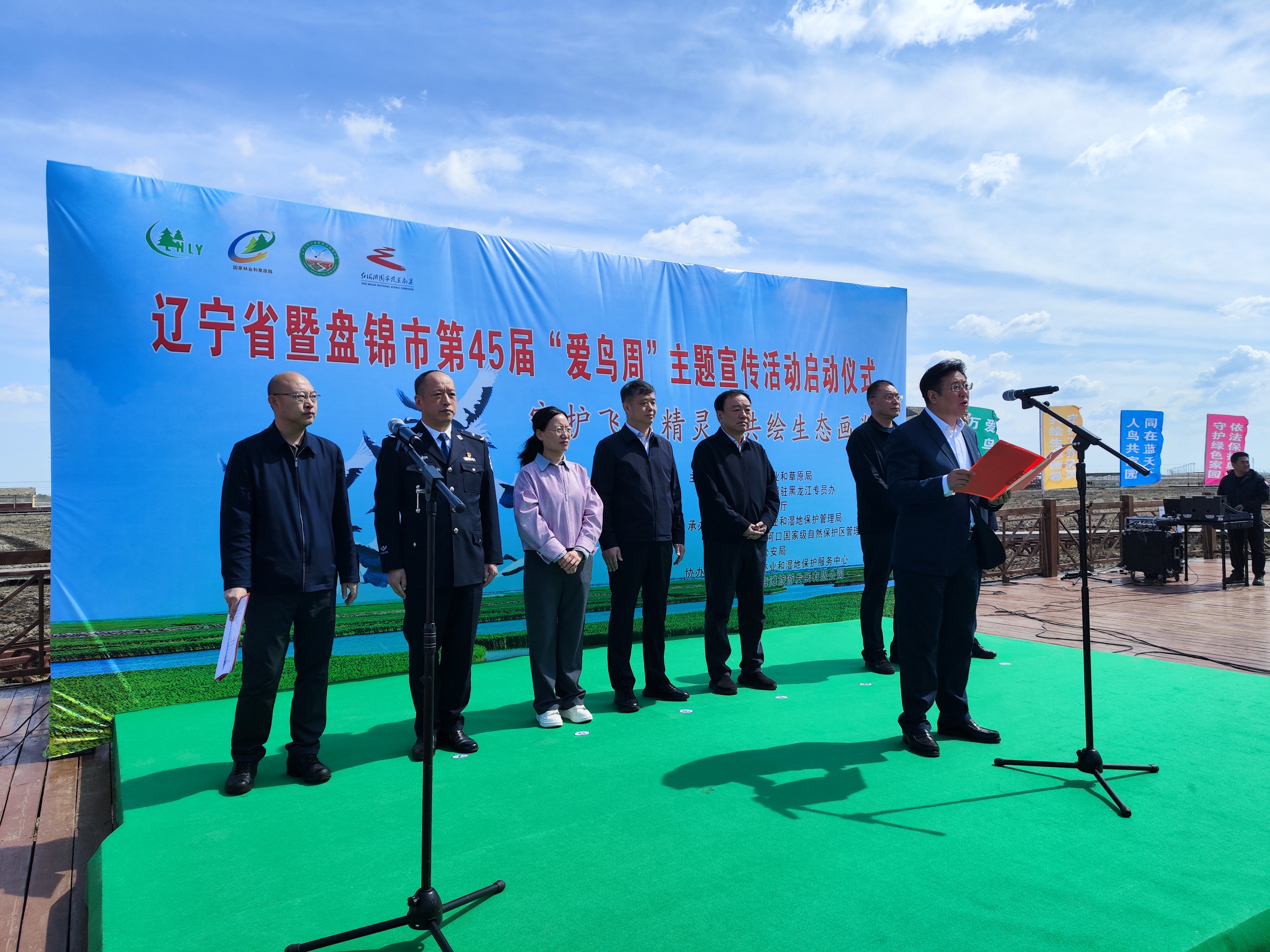 4月28日,2026年辽宁省暨盘锦市第45届“爱鸟周”宣传活动启动仪式举办,主题为“守护飞羽精灵 共绘生态画卷”。