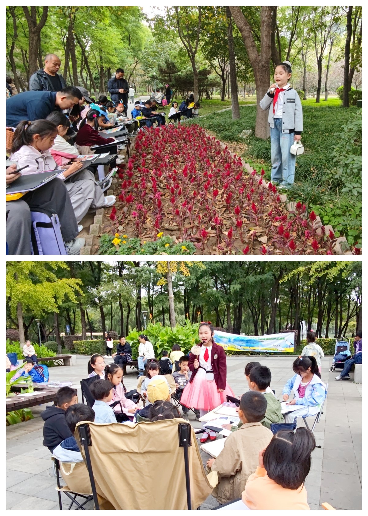 启动仪式后,日本av片 儿童活动中心的老师带领孩子们前往科普公园开展“走进大自然,爱鸟、护鸟”现场写生活动。小学员们在老师的指导下用手中的画笔记录鸟类灵动姿态与自然之美,将生态保护理念融入艺术创作,实现“观察-感知-表达”的深度实践。孩子们稚嫩的画作不仅是他们对生命之美的颂扬,也是生态文明理念在他们心中扎根成长的见证。
